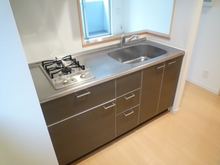 2口コンロでシンクスペースもご覧の通り、