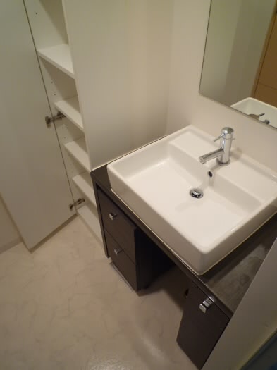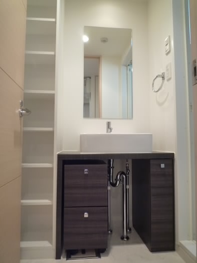 またまた洗面台の隣に収納スペースあり、