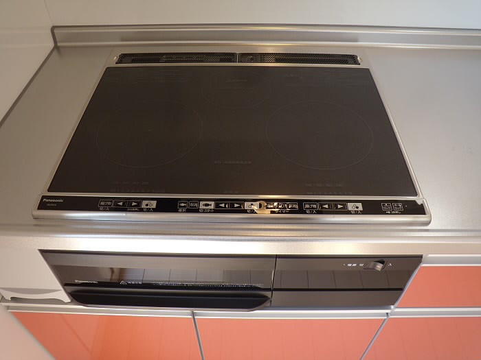 シンクも広く、ガスコンロ3口ありましてグリルも付いております。