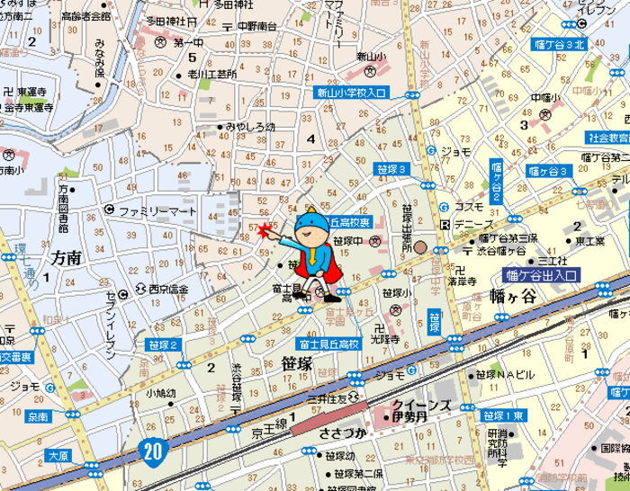 笹塚3丁目は10号坂通り商店街を軸に左右に分かれた閑静な住宅街です。