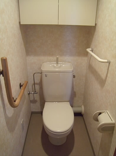 2世帯まで考えられたバリアフリーのトイレ。お年寄りの方でも安心して使えるトイレになっております。