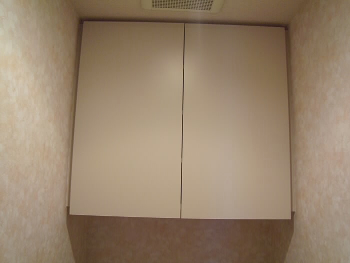 頭上には収納もついており、トイレットペーパーや洗剤などもしまえます!