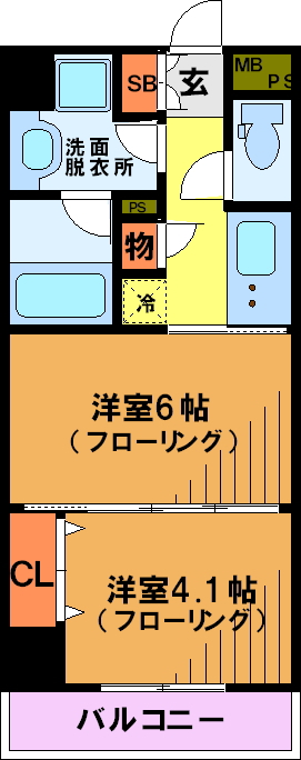 居室スペースはそれぞれ6帖、4.1帖の洋室で引き戸で仕切られているので