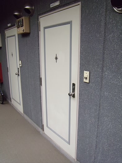 まず玄関を開けて頂きますと、左手に青い靴箱があります☆
