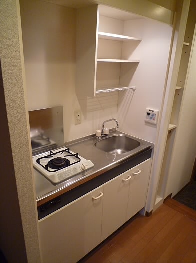 キッチンスペースは、1口ガスコンロとなっておりますが、調理スペースも広く、