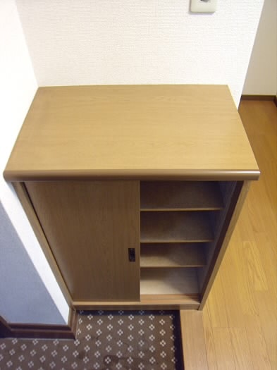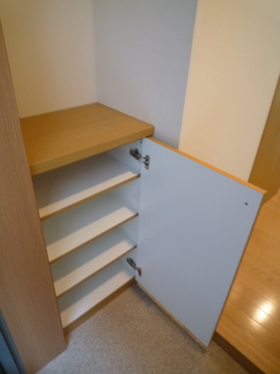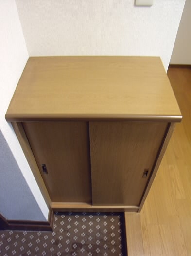 ドアを開けますと左手にシューズBOXがあり、