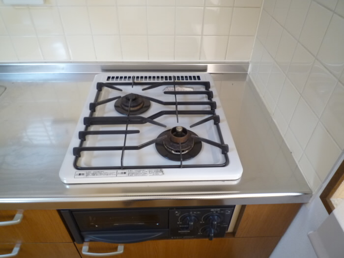 キッチンスペースは、ガスコンロ2口になっておりまして、