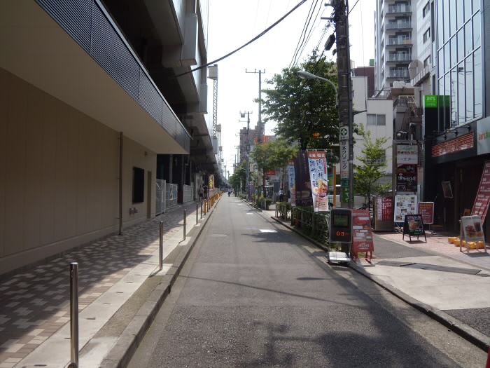 左の方(甲州街道)に駅を出て頂きますと、線路沿いの道が見えてきます・・・