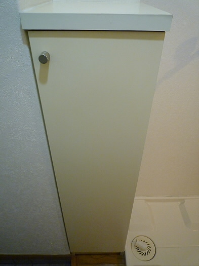 洗濯機置き場は室内に設けておりまして、上には収納棚が付いております!