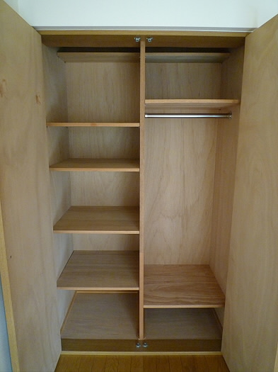 収納はやや小さめですが、ある程度の服などは入りますので、