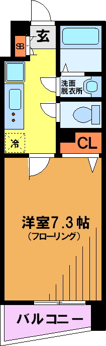 【間取り】 1K 【平米数】 22.82㎡