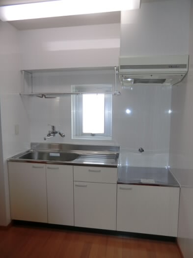 キッチンは2口ガスコンロ設置可能なキッチンで、窓がついておりますので、お料理後の