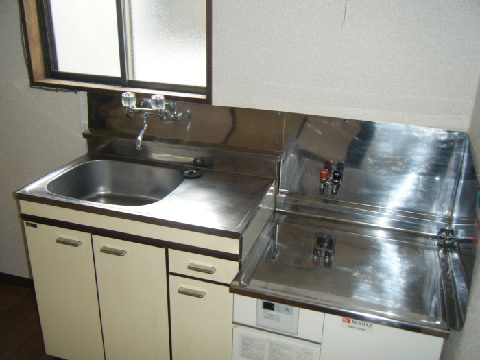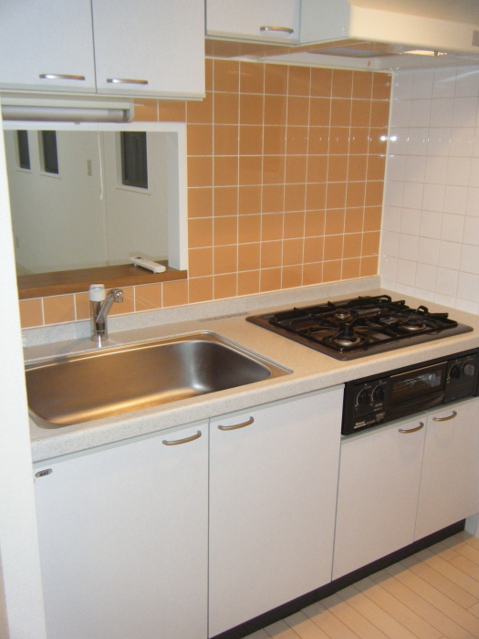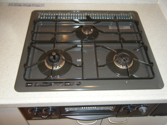 キッチンはグリル付き2口ガスコンロ、お魚料理バッチリ