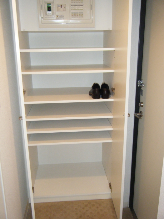 玄関前の収納。いっぱい物、靴など入ります