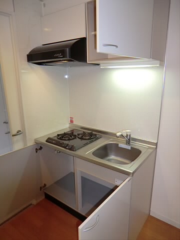 キッチンは2口ガスのシステムキッチンになっておりまして、