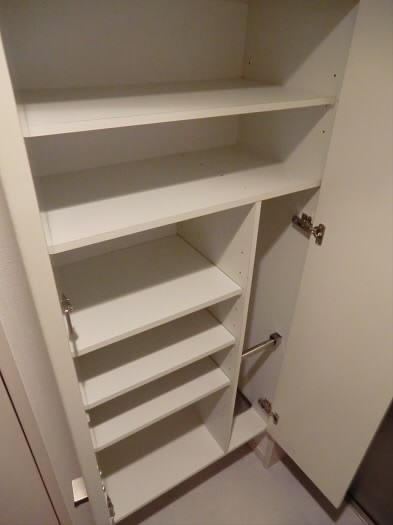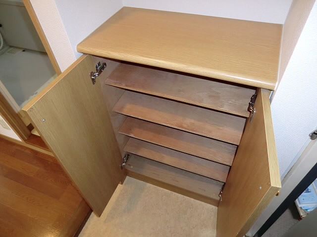 シューズボックスが備え付けてございますので、こちらに靴を収納して頂きますと