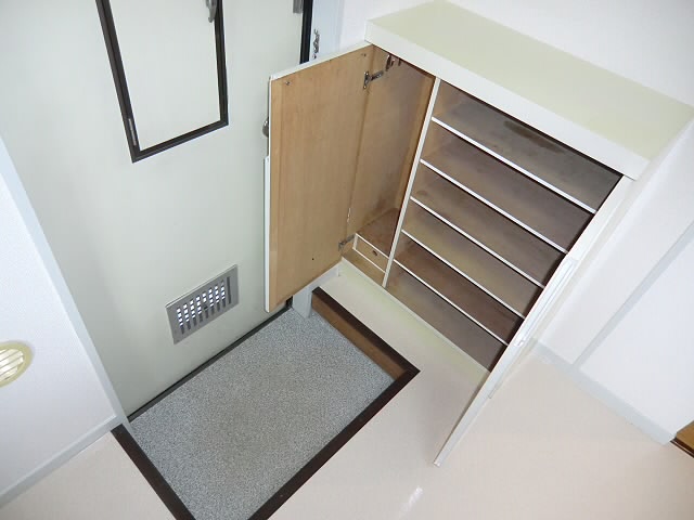 シューズボックスに靴を収納して頂きますと、玄関がすっきりしますよ。