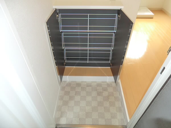 シューズボックスがございますので、こちらに靴を収納して頂けます!!