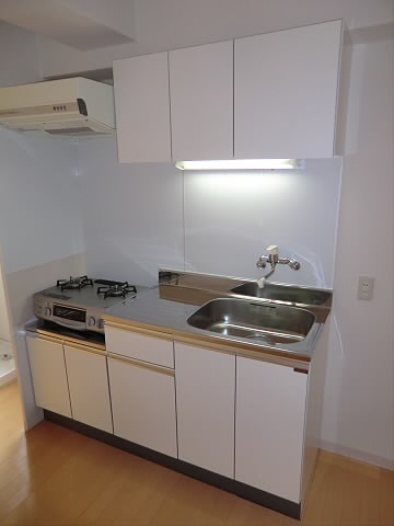 キッチンスペースは、ガスコンロが設置型のものとなっておりまして、