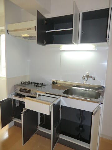 1口ガスになっておりますが、使いやすくて収納スペースもございます。