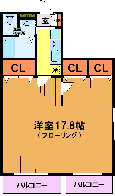 なんと17.8帖もございまして、お部屋を2つにわけることによって2Kのお部屋にもする事が出来ます!!