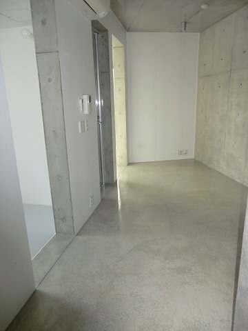 玄関をはいると、コンクリート打ちっぱなしのような壁になっております!!