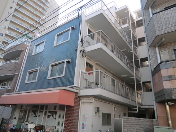 この青い看板こそがレントハウス笹塚店の店舗です