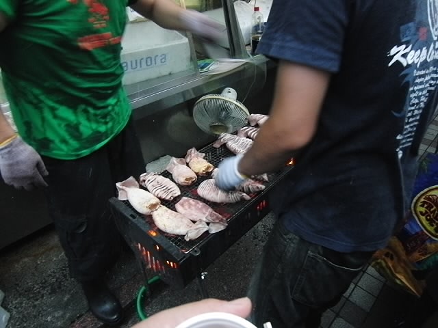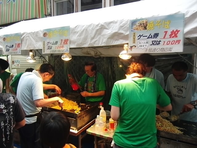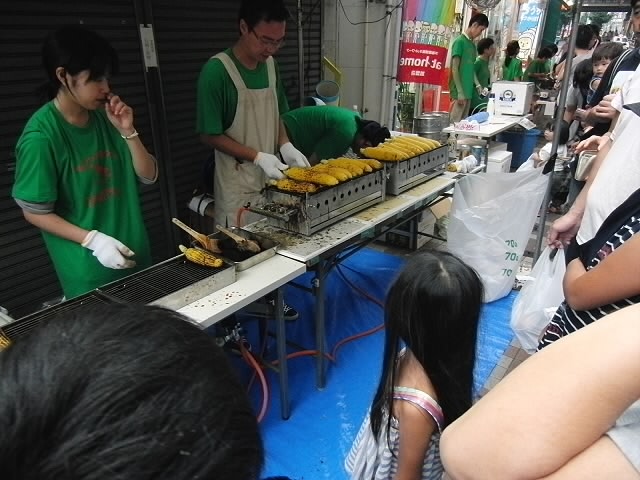 商店街に入ると焼きそばに、焼きトウモロコシ、イカ焼きなど沢山の食べ物があります★