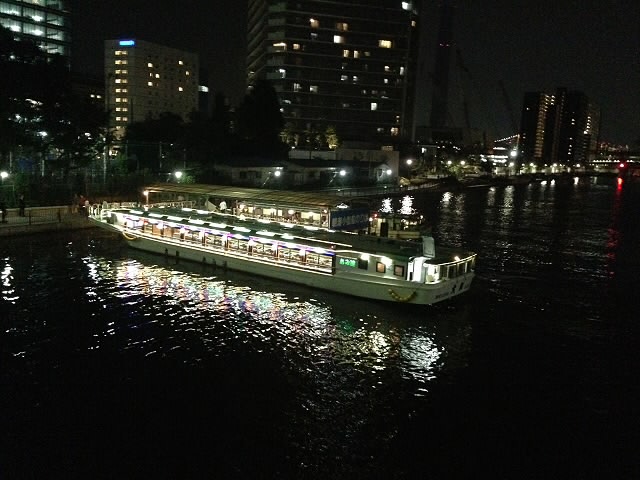 屋形船に乗り、おいしい料理に舌鼓を打ちながら、東京の夜景を堪能させて頂きました。